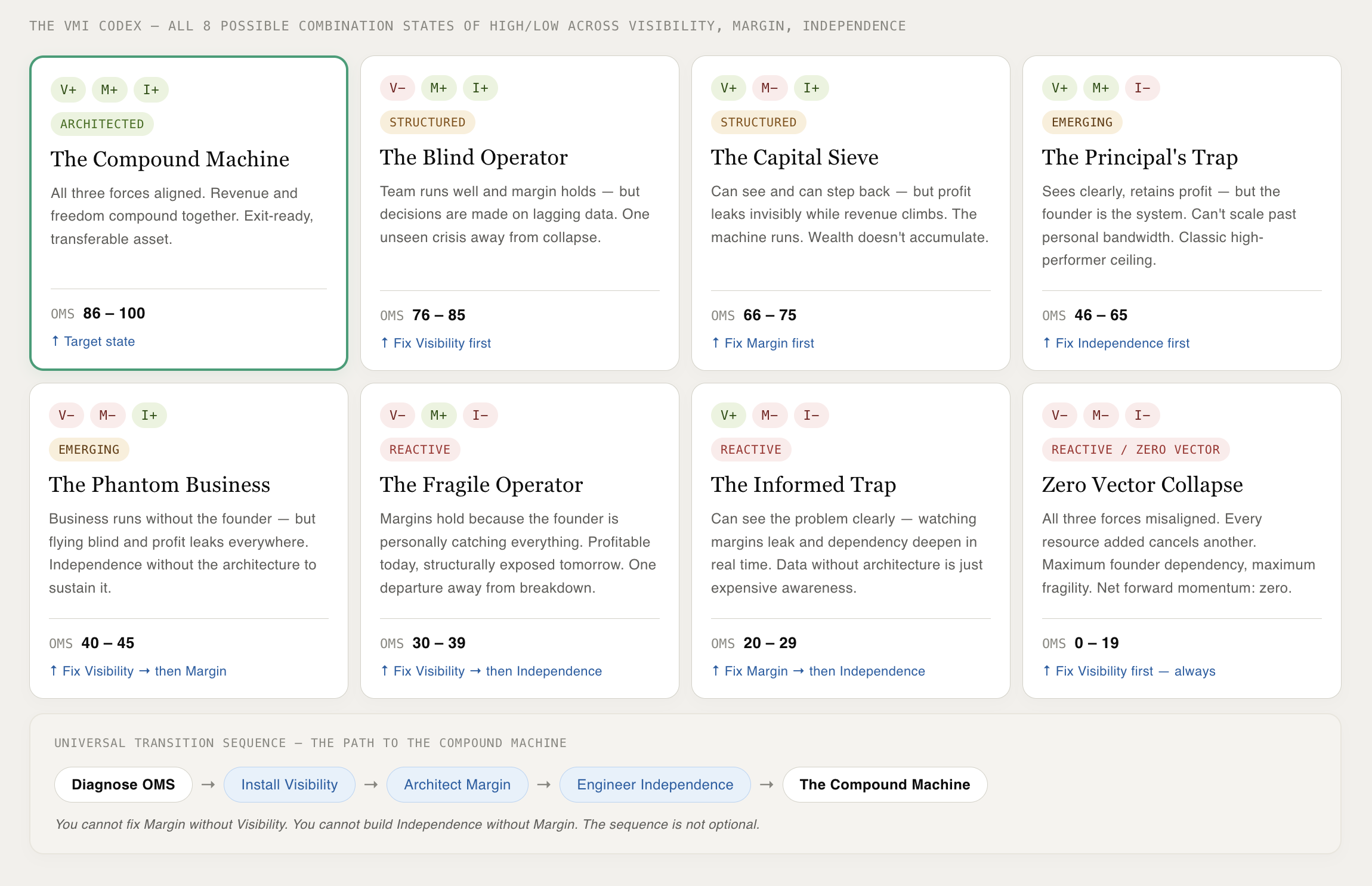 It is a complete map of every structural state a founder-led business can actually inhabit.